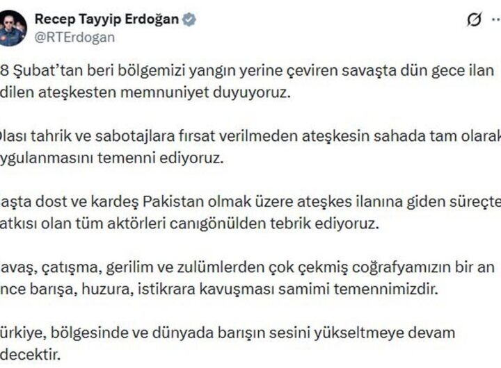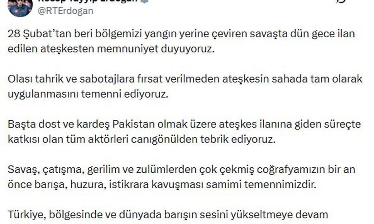 Cumhurbaşkanı Recep Tayyip Erdoğan, “28 Şubat’tan bu yana bölgemizi ateş çemberine dönüştüren savaşta dün gece ilan edilen...