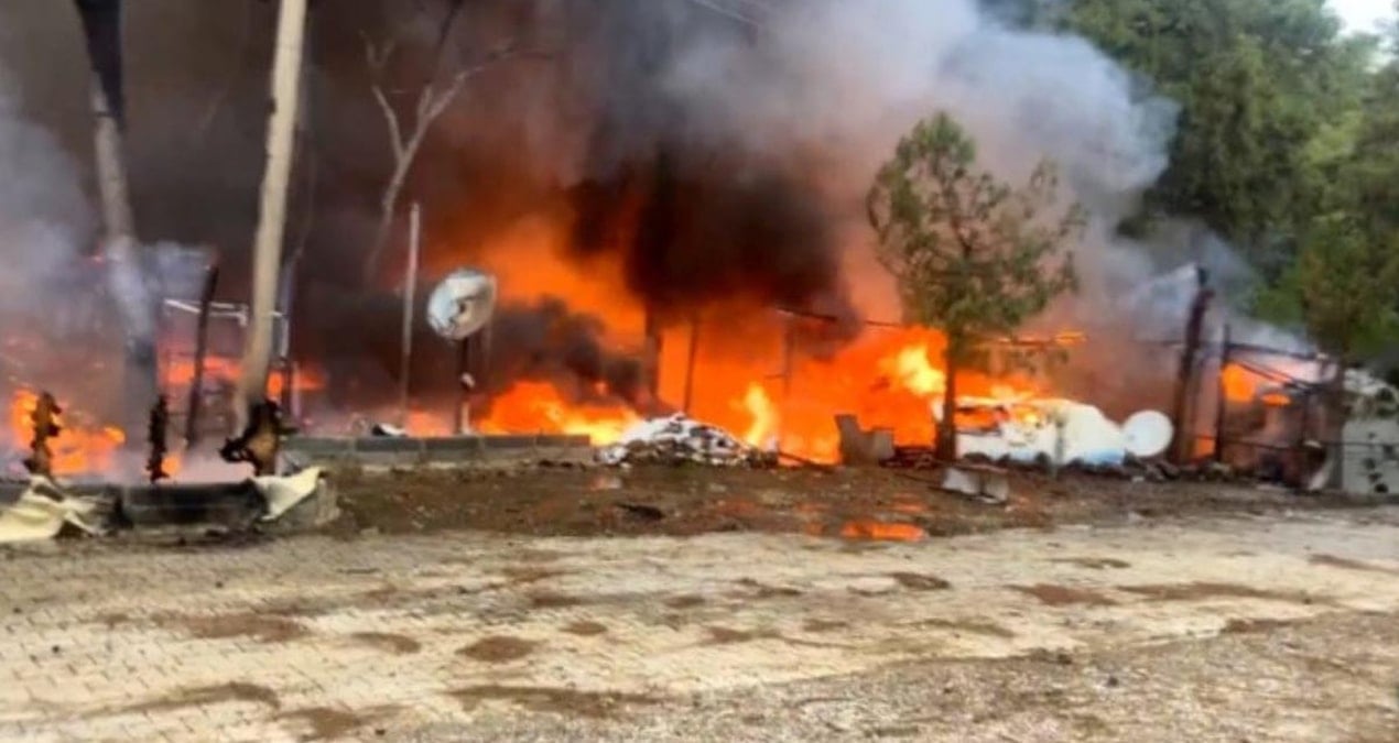 Karavanda çıkan yangın çevreye de sıçradı
